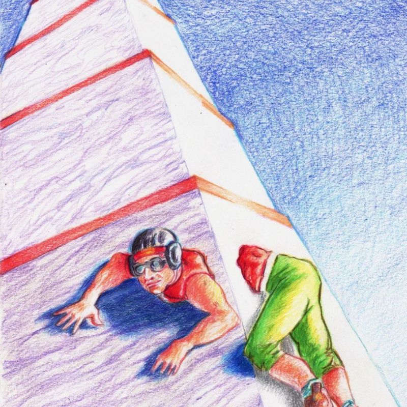 Primero la escuché a mi mujer, me alentaba, pero pude percibir cierta desconfianza en su tono de voz, como si las palabras no coincidieran con lo que sentía: “Con todo lo que te entrenaste para llegar primero y ahora que estás por lograrlo te detenés. No tenés que mirar para abajo, ¿no lo sabías? Si no es la primera vez que escalás. Que no te agarre el miedo justo ahora que estás tan cerca de la cima”.